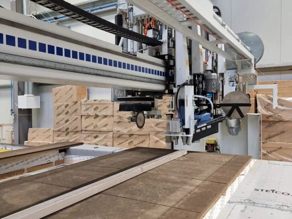 Ponad stołem formatowania ściany może swobodnie poruszać się most szyjąco-frezujący sterowany numerycznie.